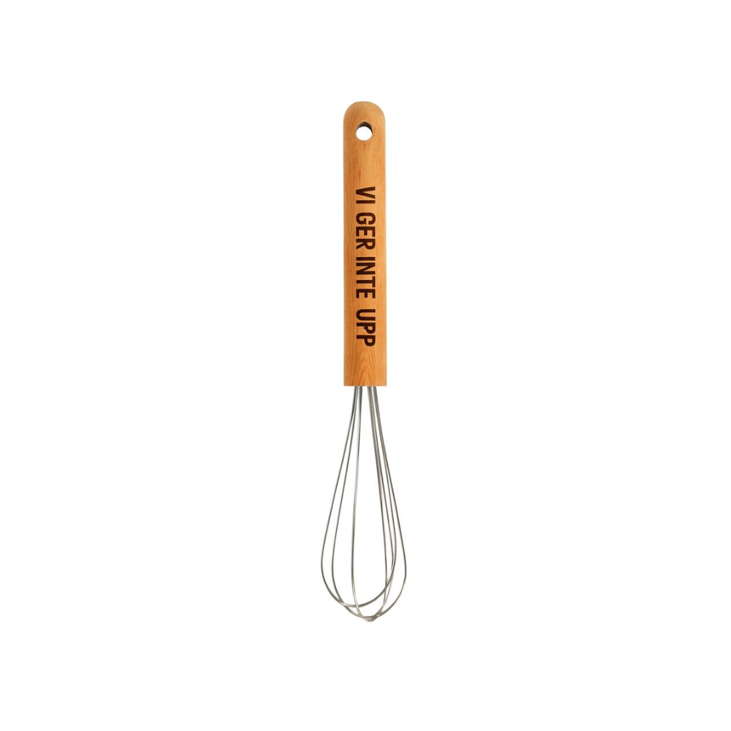 En enkel visp kan vara vardaglig. Men när den får bära ett namn, ett minne eller ett budskap – då blir den något mer. Denna visp är lätt, följsam och bekväm i handen. Handtaget i vackert bokträ ger både grepp och karaktär, medan de rostfria ståltrådarna gör jobbet smidigt och effektivt. Tänk att vispa pannkakssmet eller maräng med ett redskap som faktiskt betyder något – varje gång.
